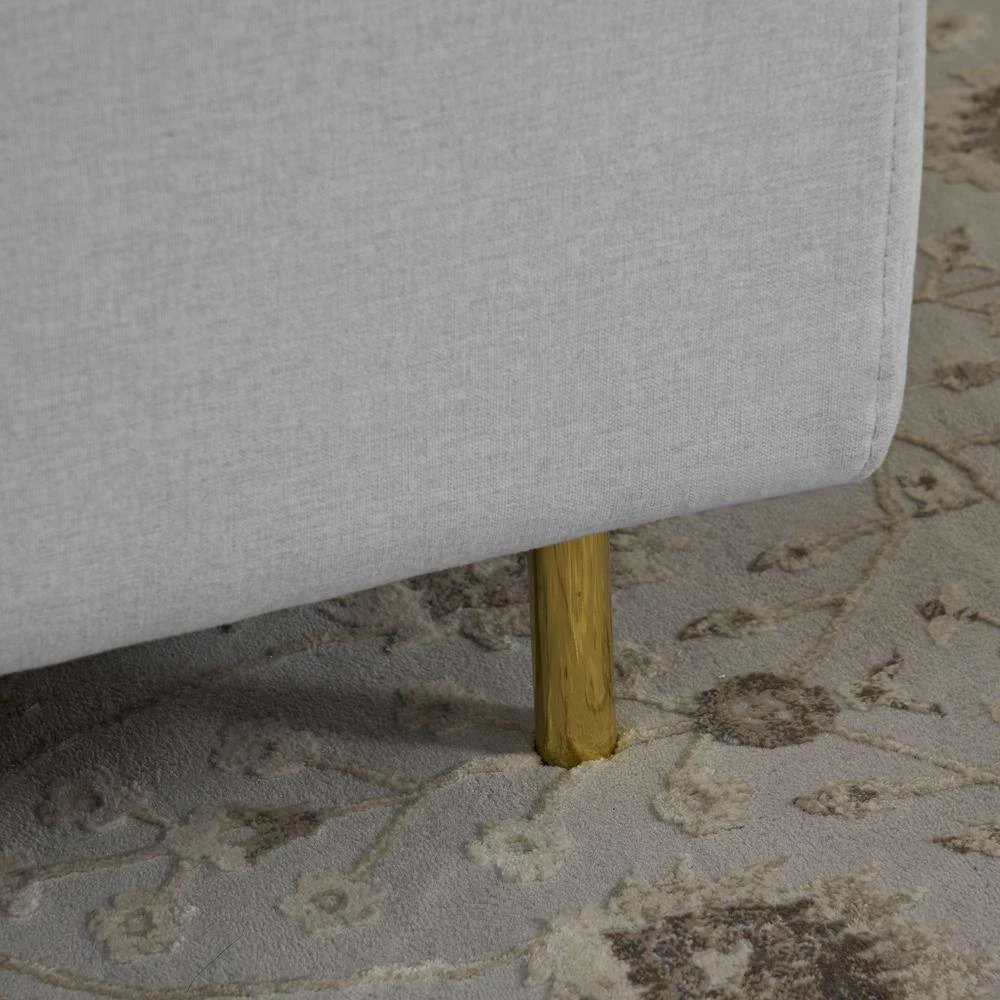 - It’s 100% polyester for sofa upholstery, high density and elastic sponge so that sofa is not too soft or too hard golden metal sofa legs