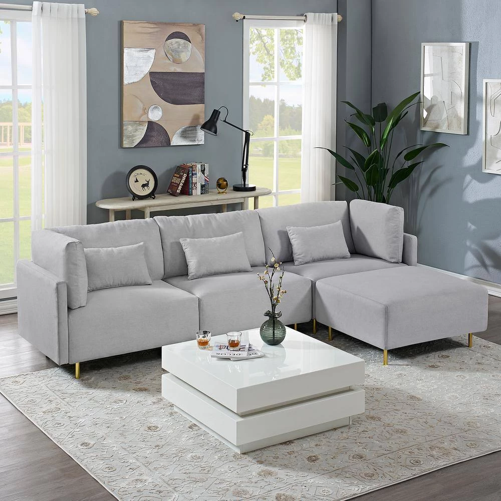This is not just an L-shape sofa, you can combine them freely according to your house space or just you like. Coil Spring and high elastic sponge are added inside the sofa cushion, so that you can sit on it without being too hard. With high quality and soft fabric, you will feel very comfortable.