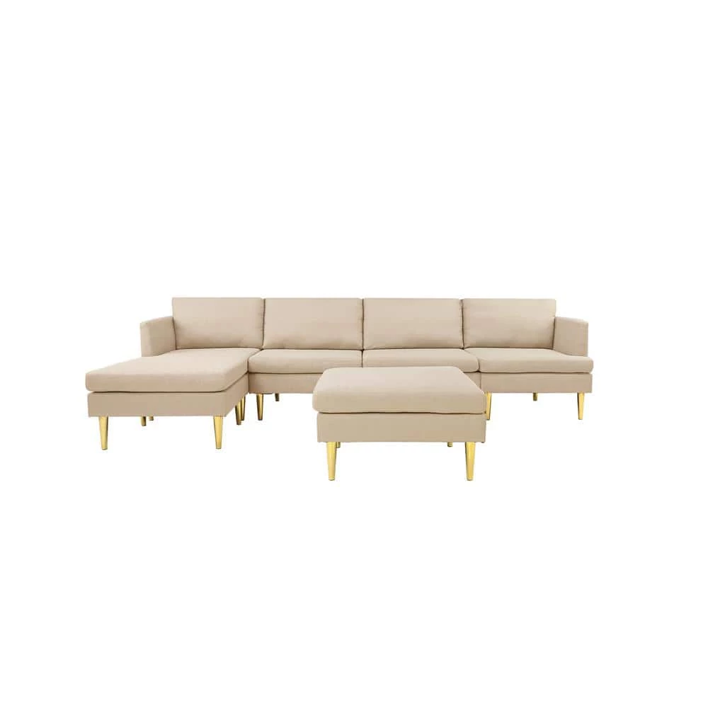 - Modern Convertible sectional sofa design, with clean lines and metal legs.