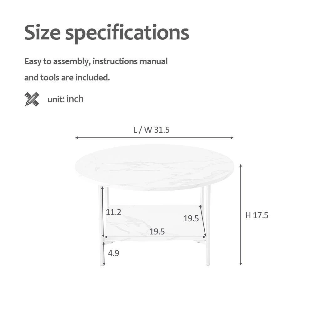 - Elegant appearance but lightweight 2-tier coffee table is made from MDF with faux marble color design is super easy to move as its structure is simple and lightweight so you can easily configure it in any spaces such as living room, office, etc.