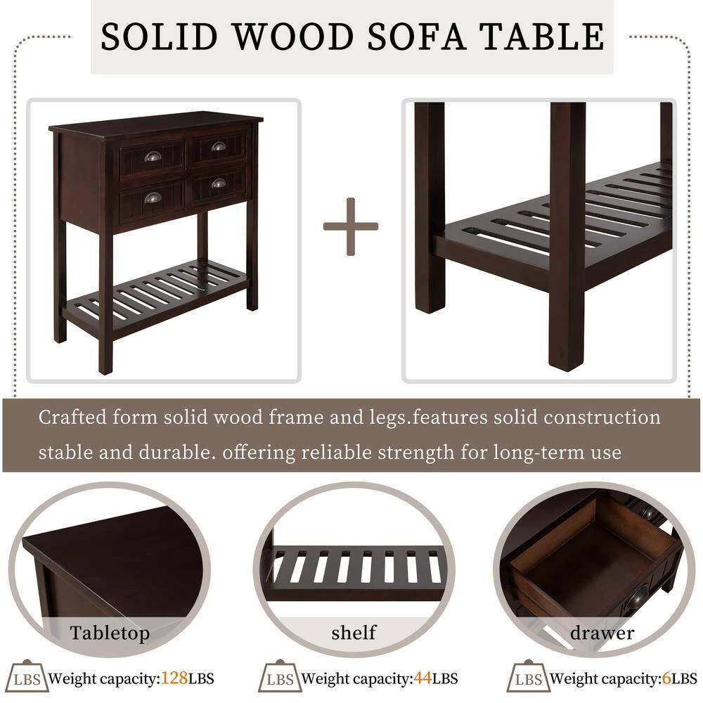 - Solid Wood Sofa Table: Crafted form solid wood frame and legs, antique entryway table with drawers and shelf features solid construction, stable and durable, offering reliable strength for long-term use. Weight capacity: tabletop: 128 LBS, shelf: 44 LBS, drawer: 6 LBS.