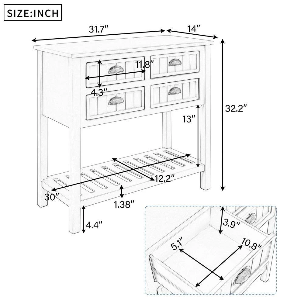 With small and exquisite appearance, this console table with drawers for entryway melds aesthetics and function together. It can perfectly fit into smaller spaces like entryway, living room, dorm room. Overall dimensions: 31.7 in. L x 14 in. W x 32.2 in. H.