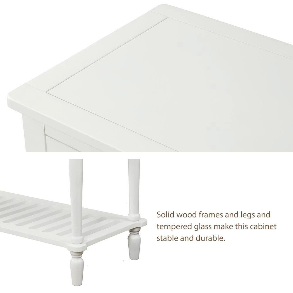 - Solid wood frames and legs and tempered glass make cabinet stable and durable