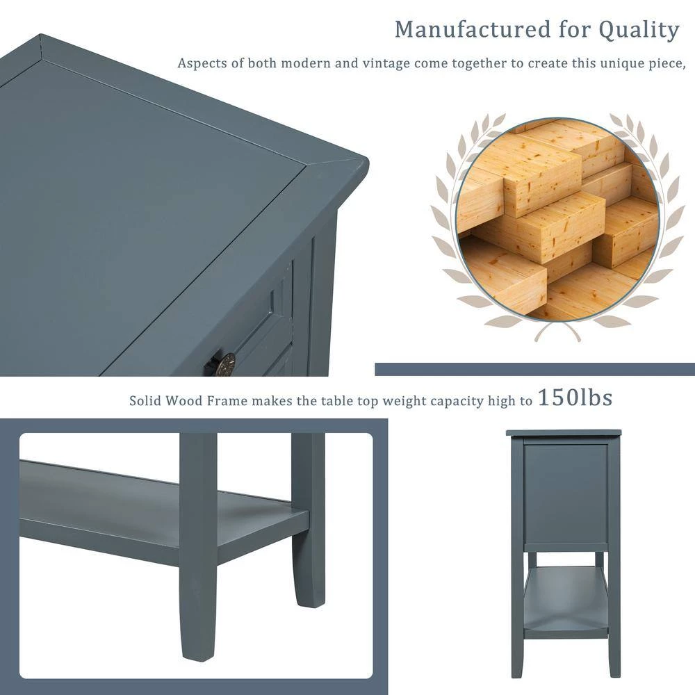 - Modern vintage design, aspects of both modern and vintage come together to create unique piece, featuring farmhouse inspired wood frame detailing on outer drawers with contrast from iron handles for heightened appeal