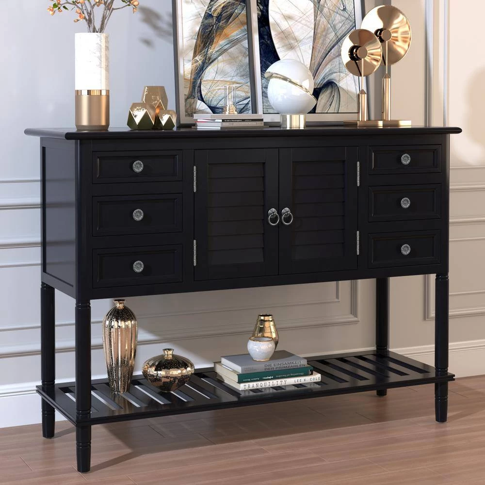 - [High Storage Capacity]With built in shelving ranging from front double doors to 6 drawers, users will have plenty of space to store their belongings and avoid letting clutter accumulate on console table.