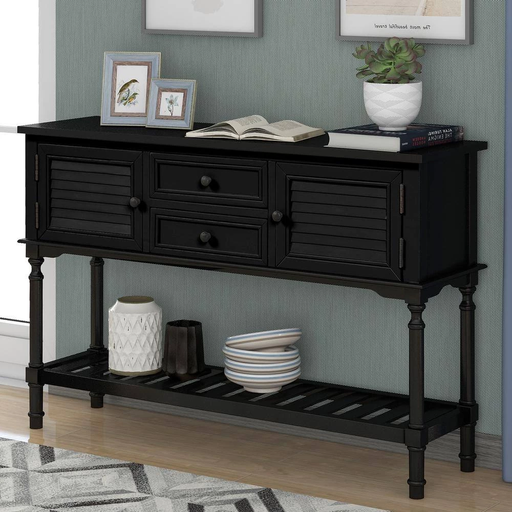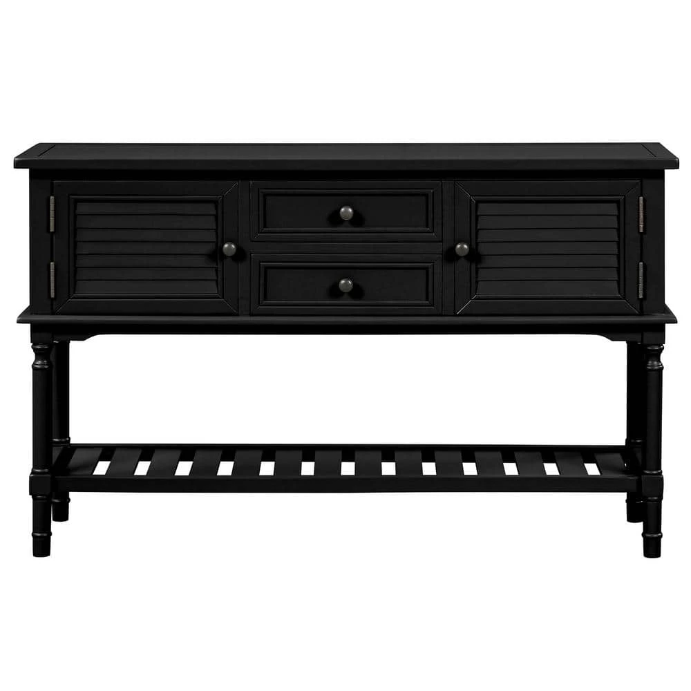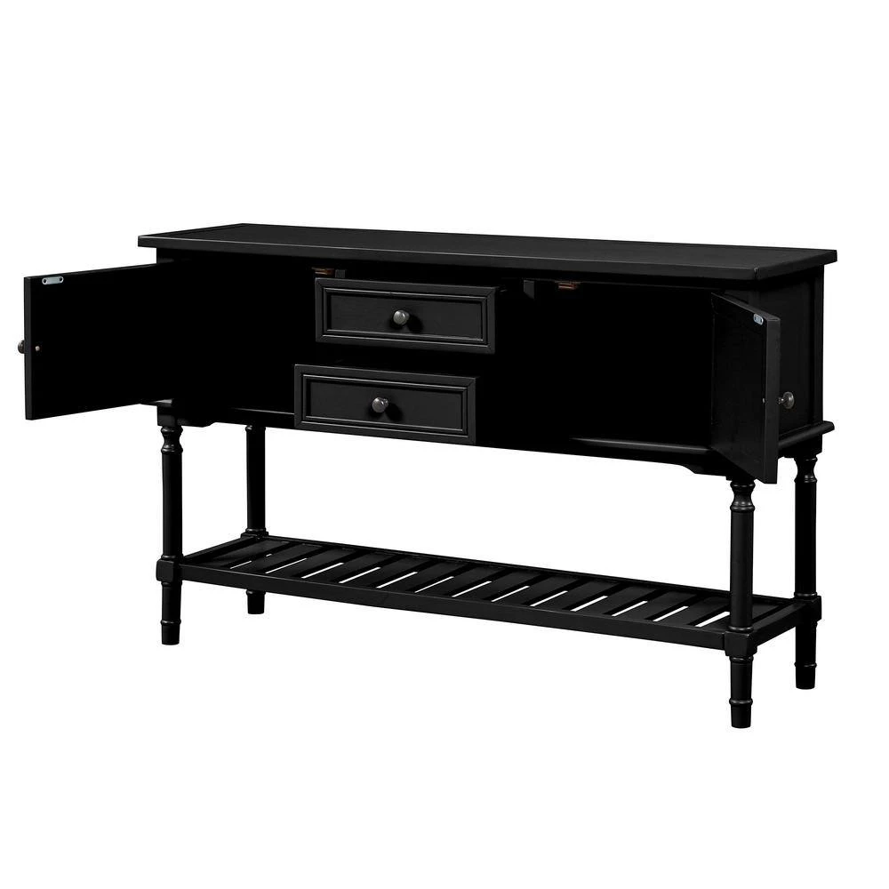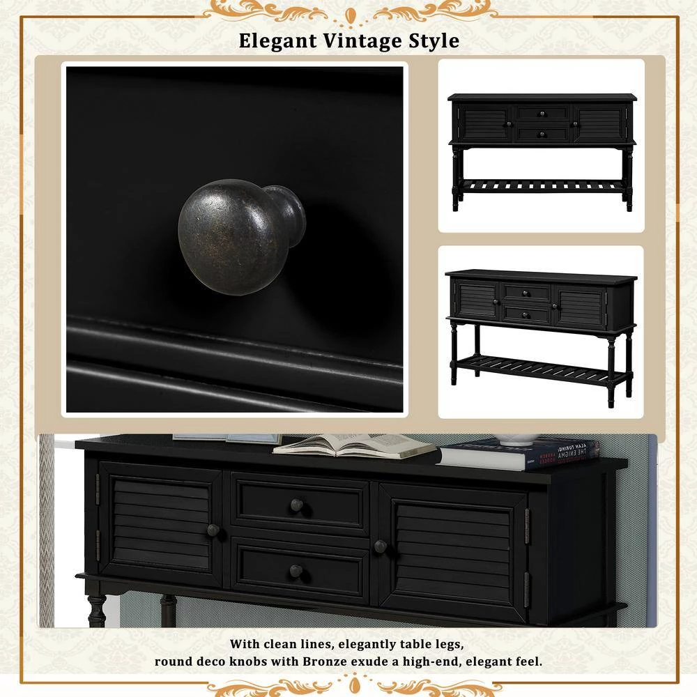 - Meet various storage needs, vintage console table functional designed to meet all kinds of storage demands are 2 drawers and cabinets to provide large storage space for your files, sundries and daily necessities and keep organized classic style console table has one open shelf to offer large holding power to support debrbasket, pot culture, books, etc top board can place your beautiful vase, cute photos and decorations, additional knickknacks or a lamp