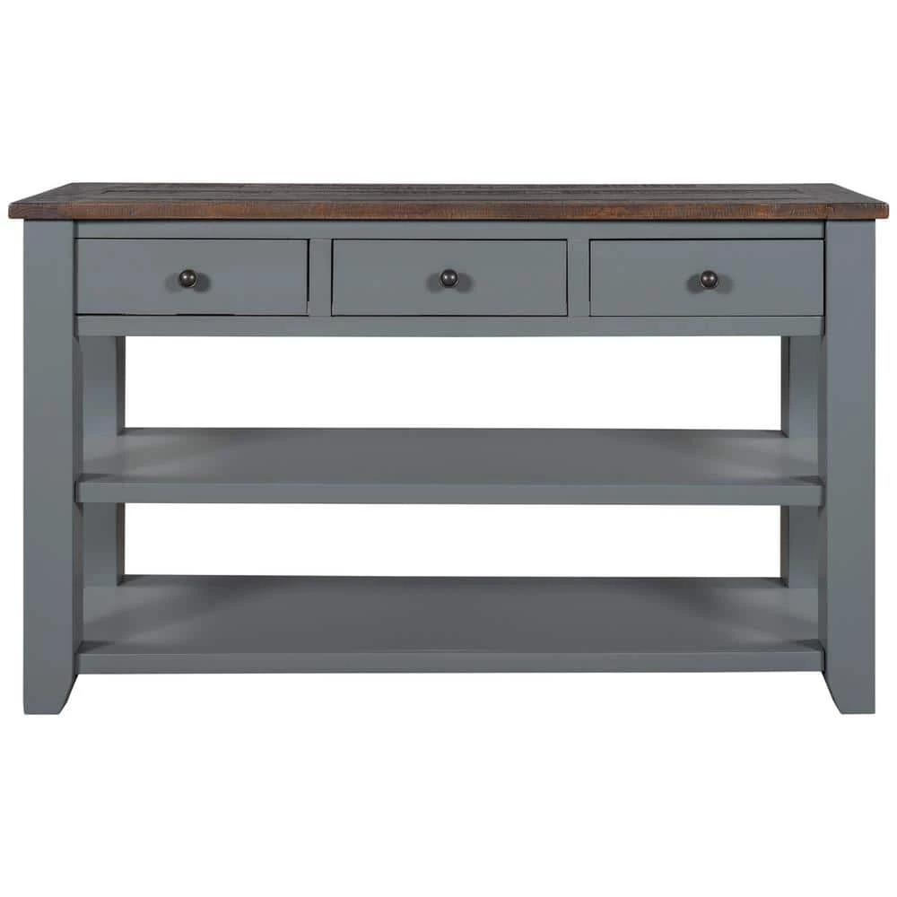 Perfectly bring mid-ages atmosphere to your home with this vintage console table, designed to meet your multiple needs. Crafted with a deliberately aged surface, this console table comes complete with three top drawers that open to hold your daily necessities and keeping them out of sight. And the spacious shelves are the perfect place for storage baskets, books, and more. The polished surface of this console table feels smooth to the hand. Crafted with thick Pine and MDF wood slabs and accented with quality Antimon handles, this table is suitable for stairs area, living room, bed room, and next to sofa. This is a retro appeal that will leave your guests talking.