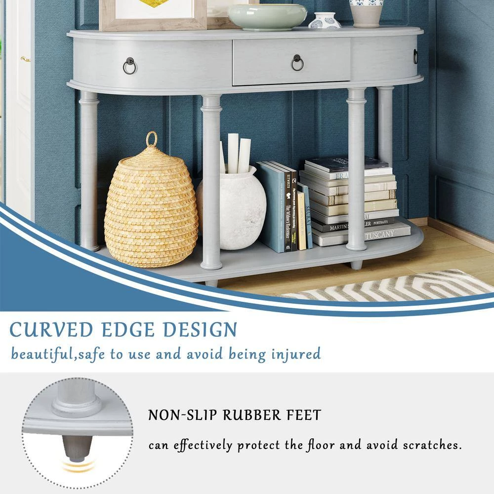 - Curved edge design: circular desktop design is unique and beautiful. Besides, design can be closer to wall and save space. Different from traditional four desktop corners, it is safer to use and avoid hitting corner of table. At same time, anti-slip glue of four table feet can effectively protect floor and avoid scratching. Believe console table can bring you a wonderful experience