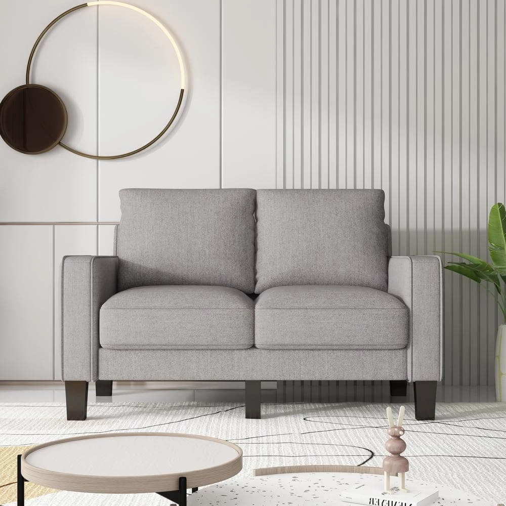 The frame of the couch is made of high-quality solid wood and metal, which ensures that every part of the sofa is firm and durable. And the sofa has 6 legs, which can bear the weight of sofa evenly. Weight capacity more than 800lbs.