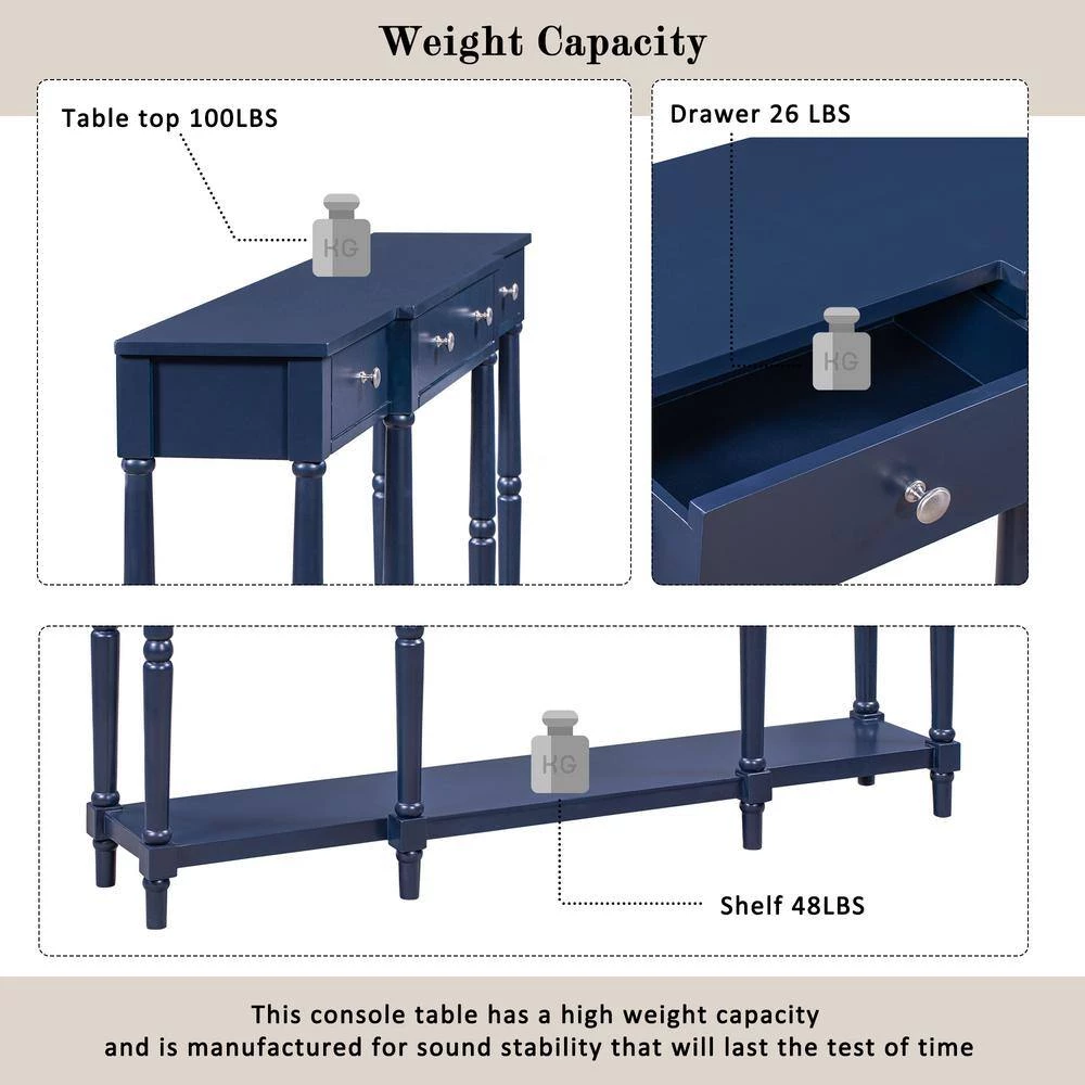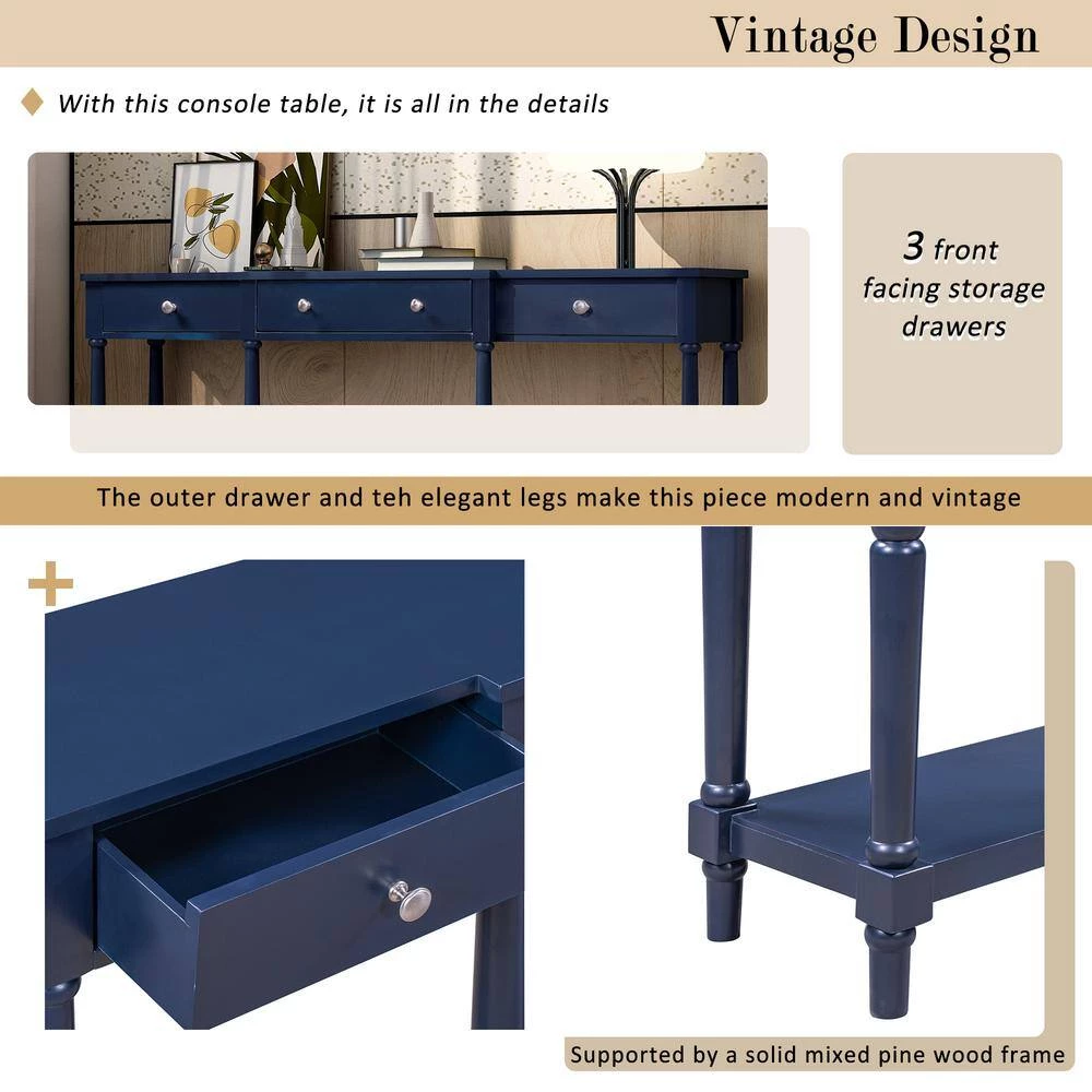 - Storage options, built for premium functionality and design, console table manufactured to be a utilized home staple with plenty of storage options to choose from, featuring 3 front facing storage drawers for smaller items and a spacious bottom shelf and upper countertop for displaying your favorite decor