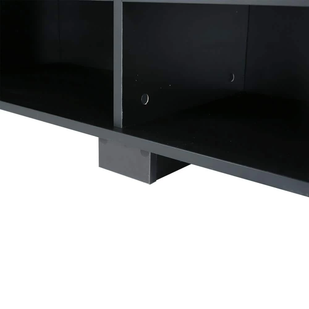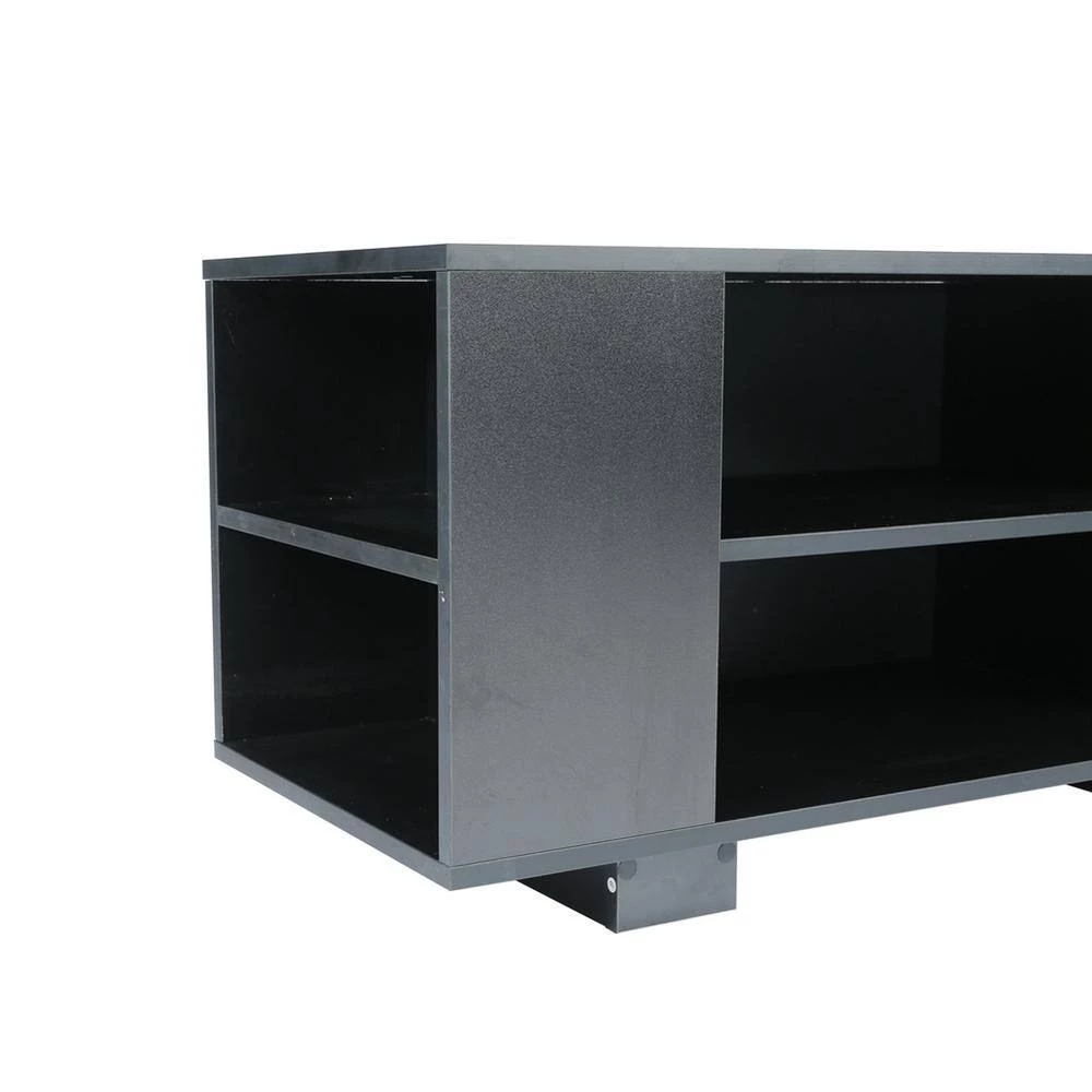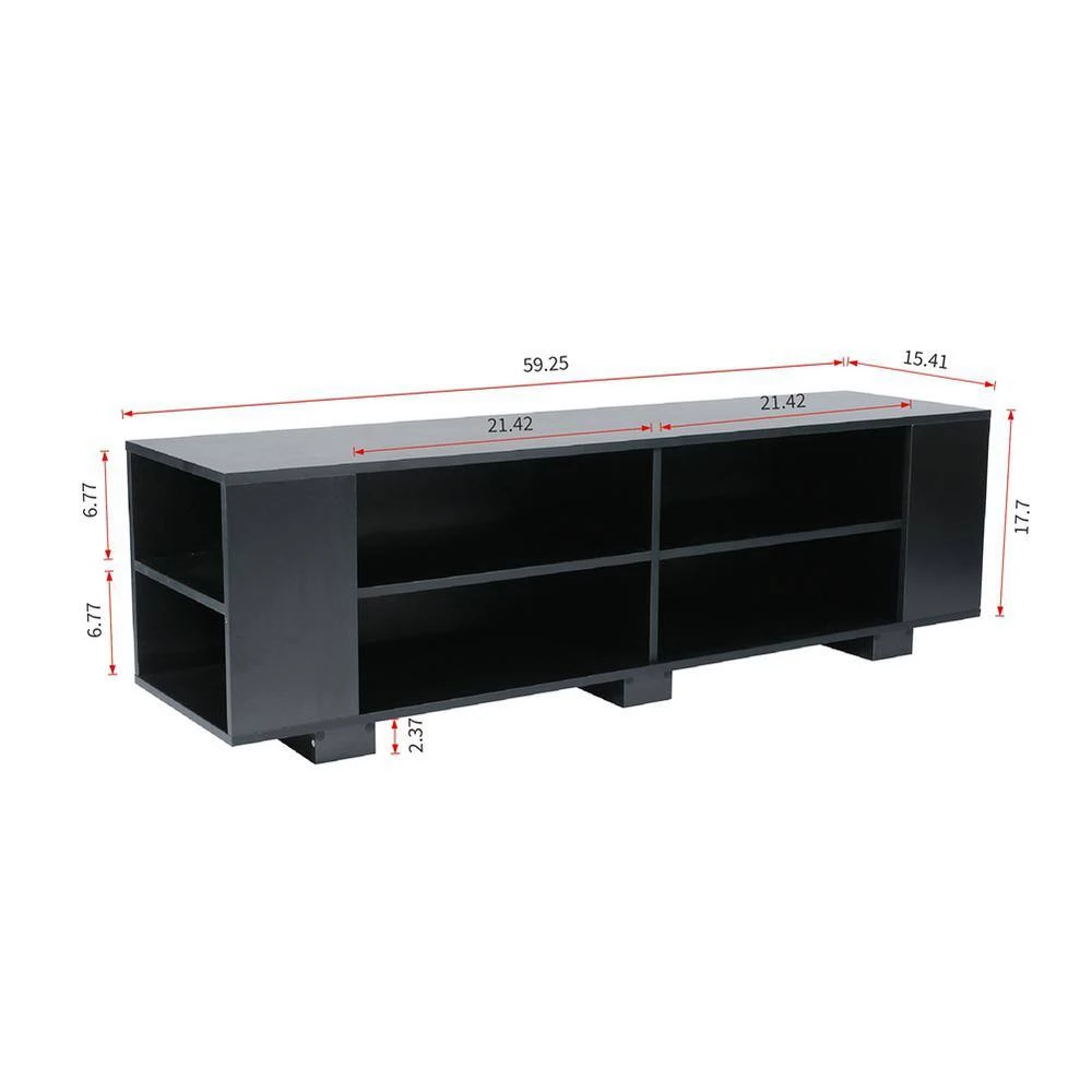 Our 59”TV stand has eight large open storage spaces on the front and side. You can put CD, DVD, books, magazines and accessories in order. The open storage makes it easy to display and take your things. And the four shelves can be adjusted up and down to facilitate the placement of items of different heights.