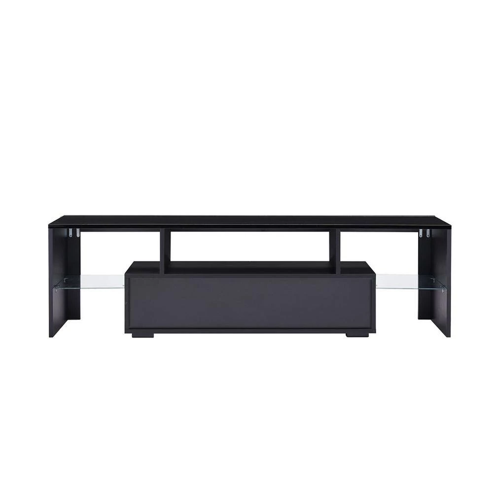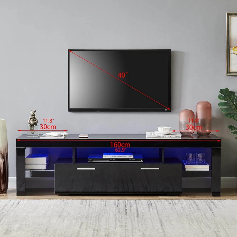- FUSING DESIGN WITH FUNCTION: Featuring a modern and simple design, this TV Stand with Led fits with different room theme, and the LED lights could create different atmosphere for your room.