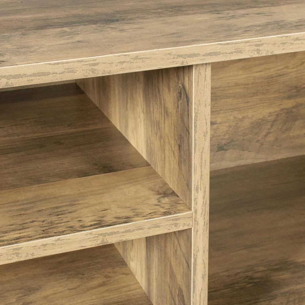 This TV stand features modern farmhouse style and all the storage you want for your living room or den. The multiple storage compartments are a great way to store all consoles, movies and more for a well-organized TV room. Crafted with 3 holes at the back of the cupboard for an easy cord management.