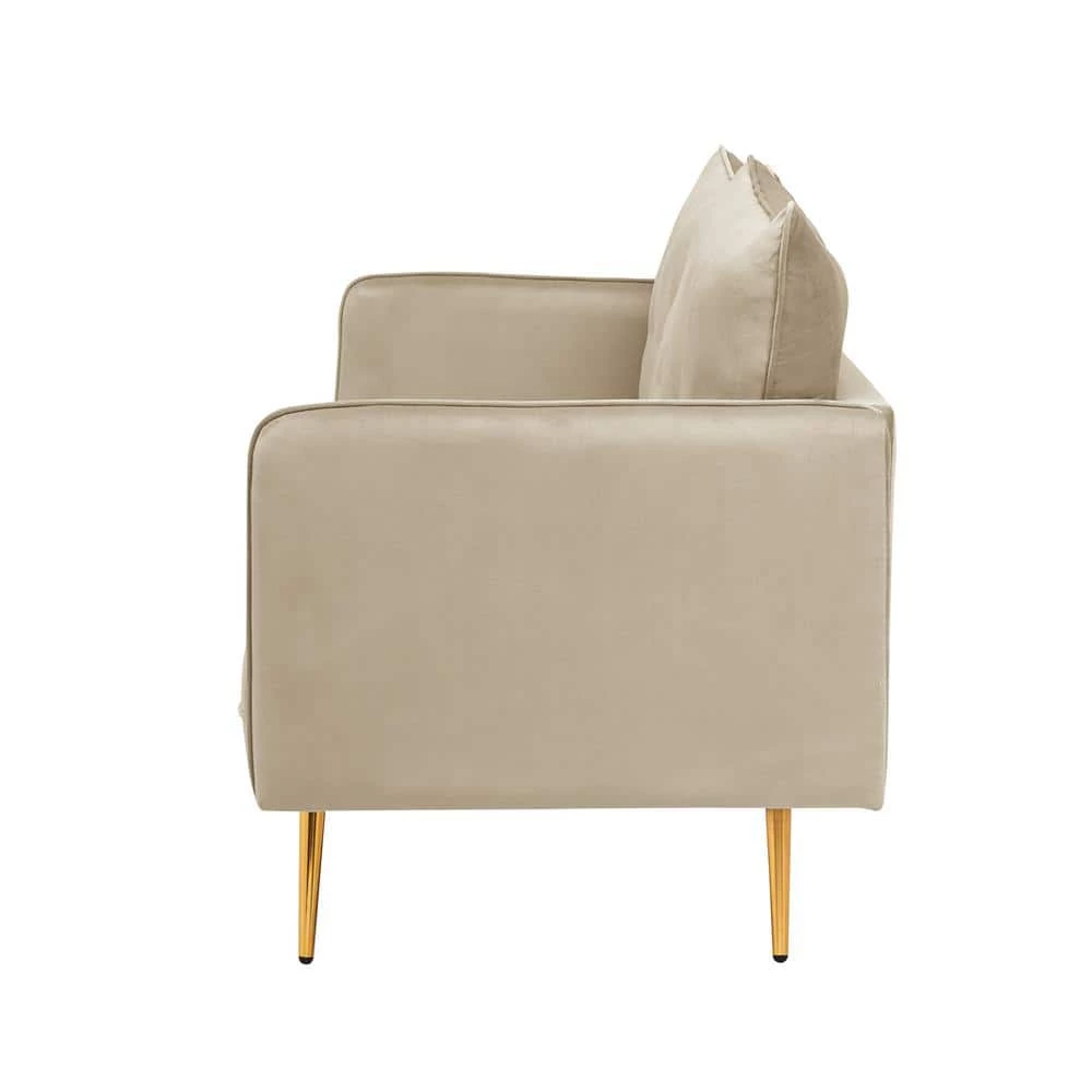 - Sofa has a comfortable backrest and round armrests, supported by golden metal legs, which is not only stable but also can create a gorgeous style