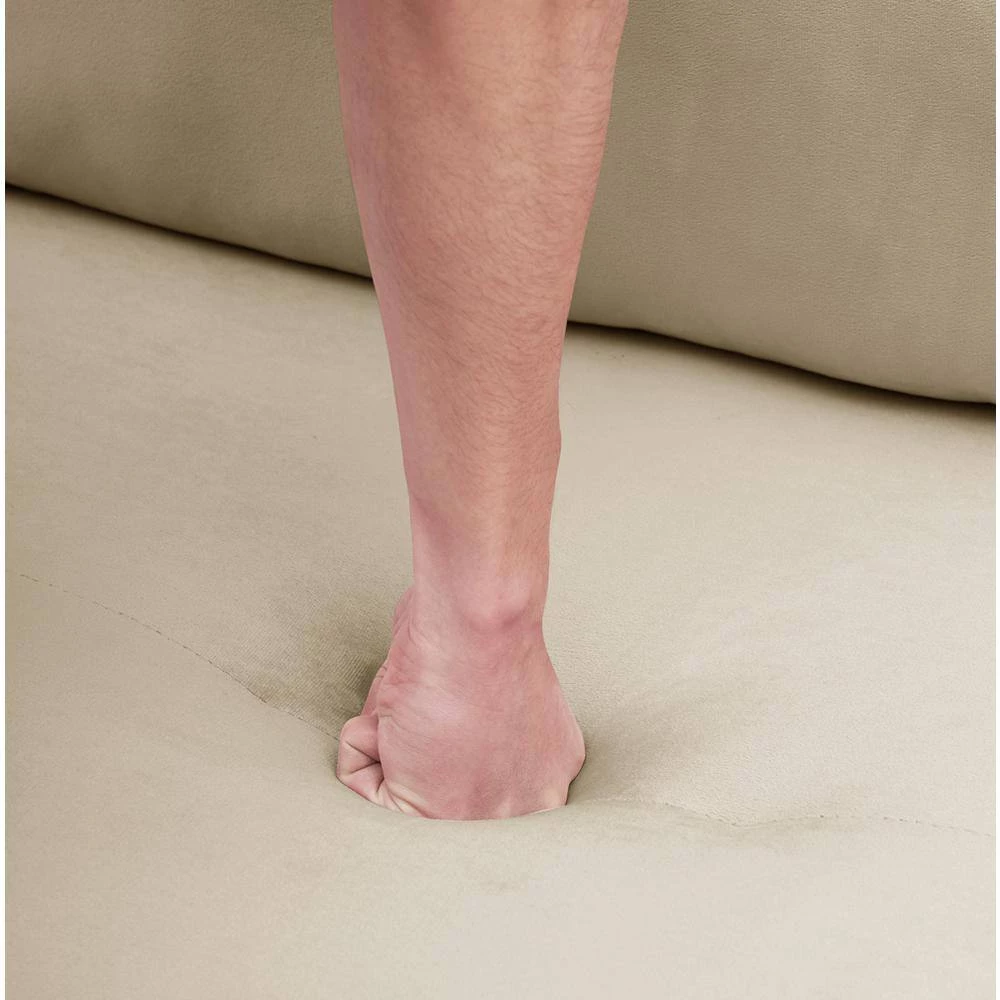 The elegant 2-person sofa is designed with a tufted backrest, golden tapered legs, and soft velvet fabric, which combines fashion and comfort. The cushion of the backrest is movable, and the seat and backrest are filled with high-density foam, which is not easy to wrinkle when sitting down. The wooden frame and metal legs ensure the stability and durability of the sofa, and it can hold up to 600 lbs.