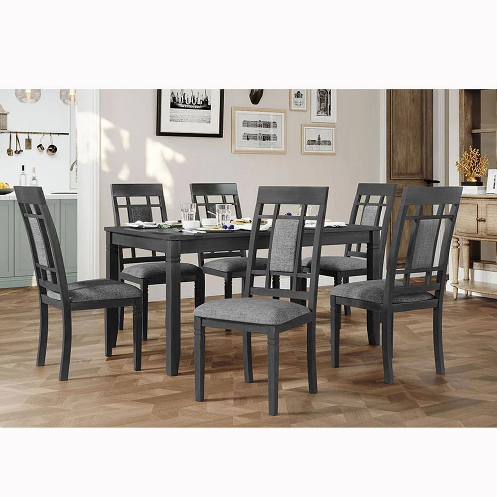Dining Table Set for 6: This farmhouse dining table set creates a rustic decor and an classical feeling with its gray finish to your dining room. Measured with a 60x36inch large rectangular dining table and padded dining chairs, this dining set is comfortable for 6 people seating. Engraved texture of these rubber wood table legs provides not only sturdiness but decorative look.
