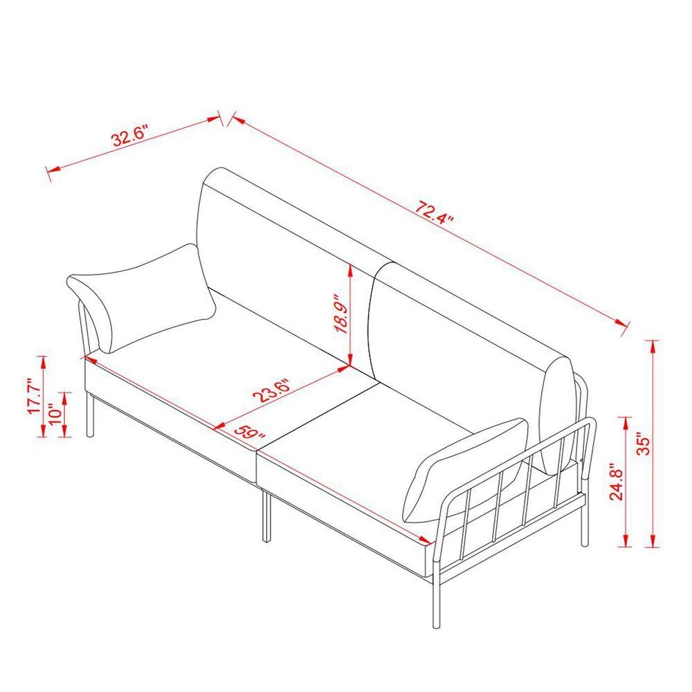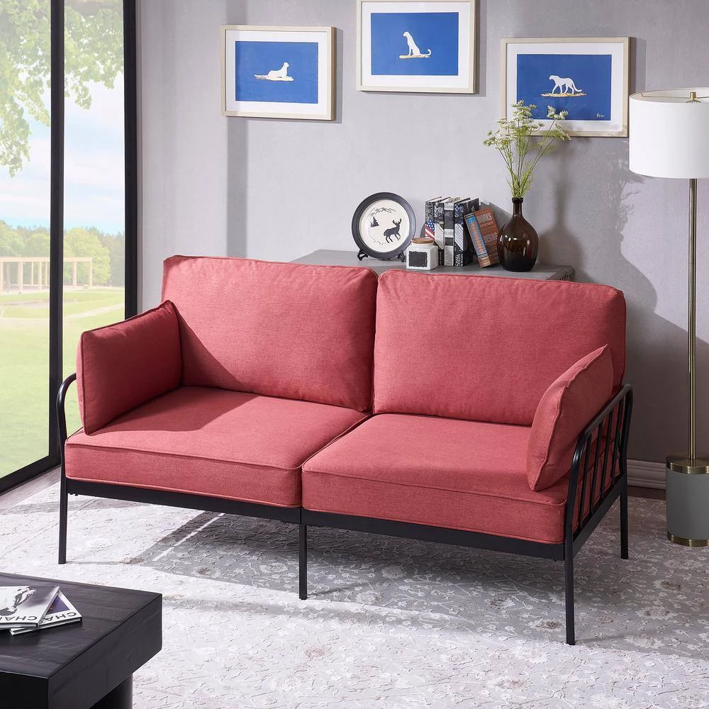 The metal sofa frame with black powder coating finished,just like American rustic style. With coil spring and high density sponge plus soft linen fabric let you feel very comfortable sitting on it. Cushion covers are easily removable,also washable so that you can clean it easily.