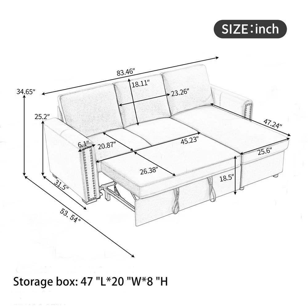 - The tail of the sofa bed is pulled out in a drawer type, the equipped portable handle with the assistance of the bottom pulley device to quickly complete the bed transformation.