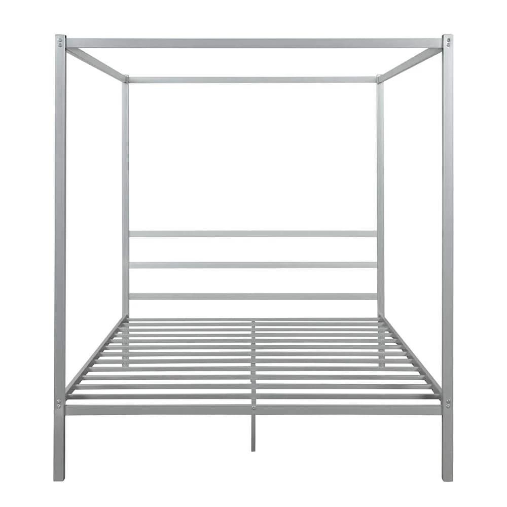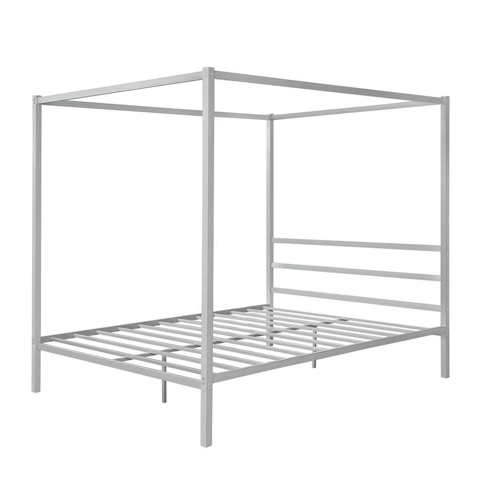 - The Canopy bed is an eye-catching piece with a modern design that will make perfect centerpiece for your bedroom. With a minimalist headboard and footboard, it is crafted with a sturdy metal construction. It includes secured metal slats without needing a box spring.
