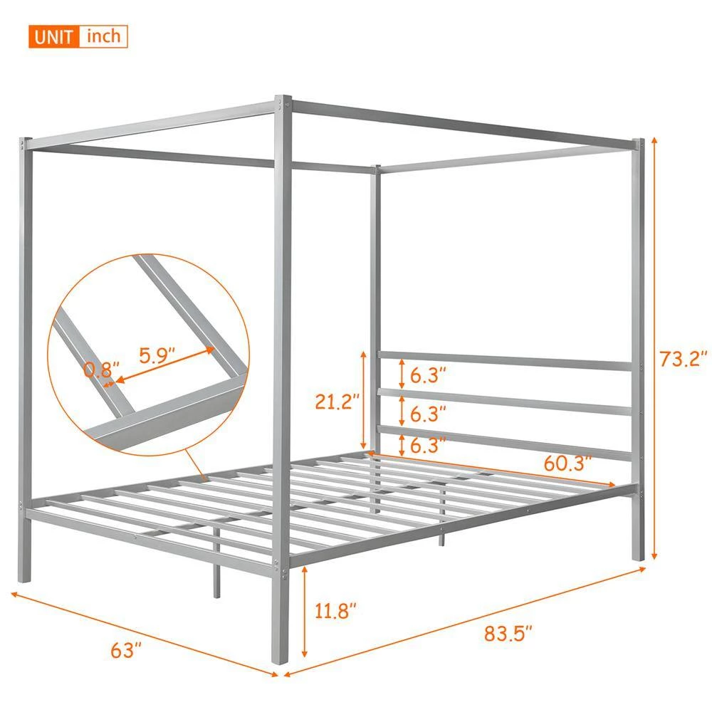 - Modern Industrial style metal frame design with canopy top,Suitable for different decoration styles.