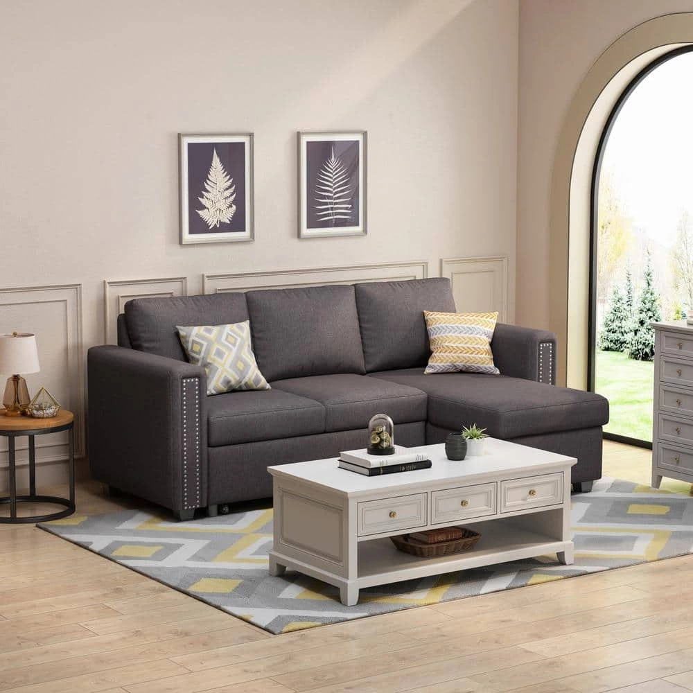 83 in. Pull Out Sleeper Sofa Reversible L Shape 3 Seat Modular Sofa Furniture Set. The convenient space in the storage chaise provides the perfect place to put blankets and magazines. For Small to Medium Living Room. The modern multi-functional sofa bed is very soft and comfortable to sit up, and the best choice for a warm family.