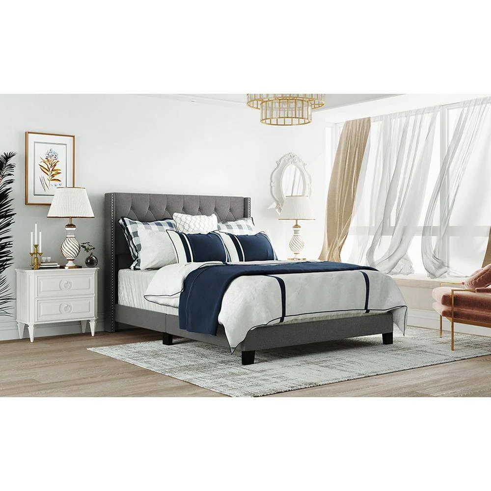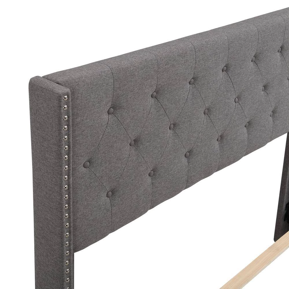 - [Elegant Design] Upholstered in foam-filled polyester for an inviting feel, the included headboard boasts button-tufted detailing that adds a touch of visual texture. It gives any room a spark of style that’s both modern and timeless.