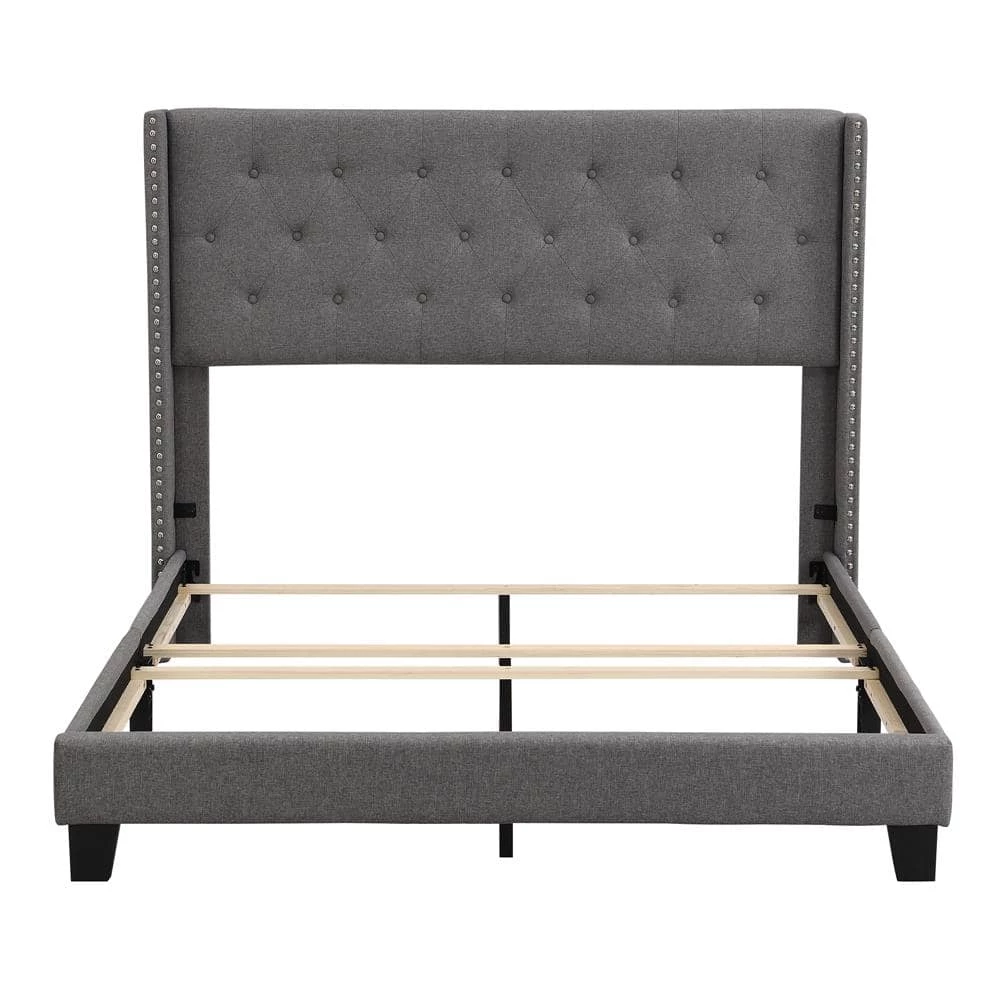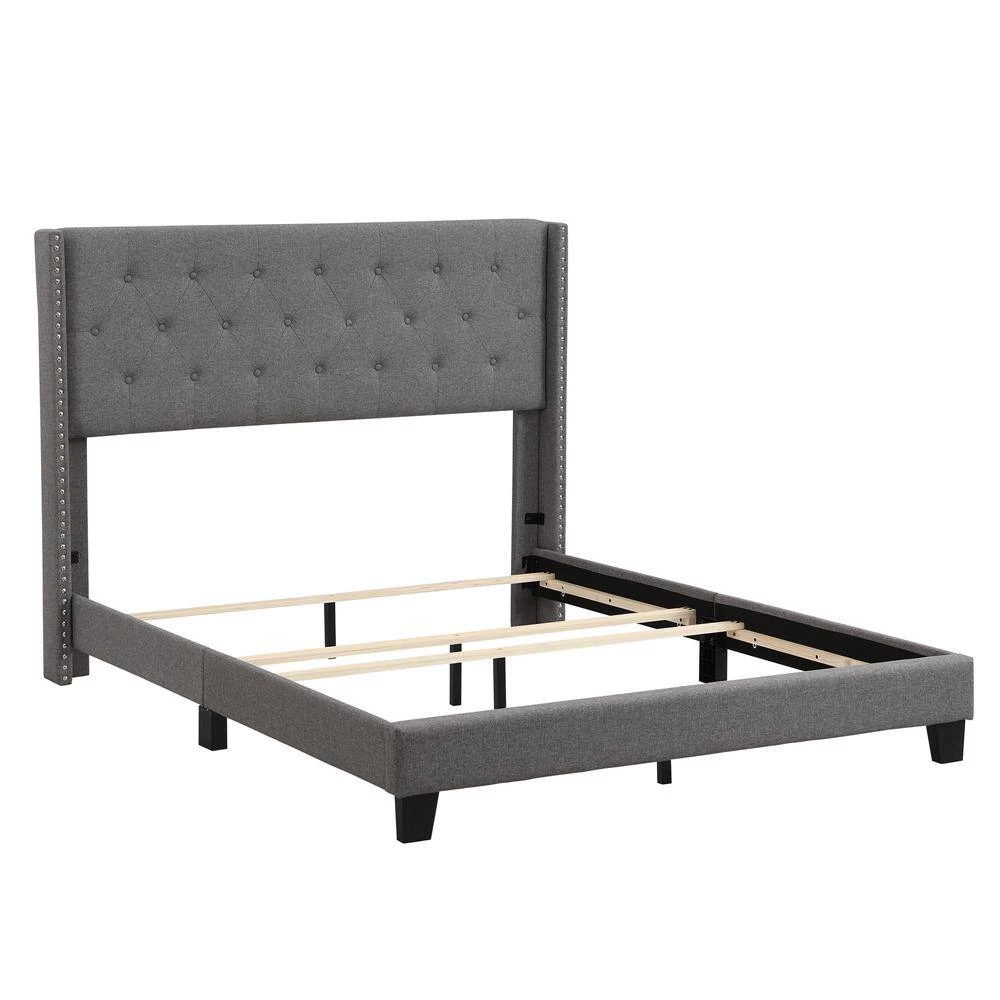 This beautiful Upholstered Platform Bed features button tufted upholstered headboard that adds a contemporary chic look to your bedroom and filled in thick foam to add extra comfort.Sturdy wood frame construction and a wooden slat system to add extra stability and safety. Despite its size and solidity, this piece comes with hardware and instructions included and anyone can assemble it, without a problem. If there are any questions, please don’t hesitate to contact a friendly member of our customer service team who will help you with any issues, ASAP.