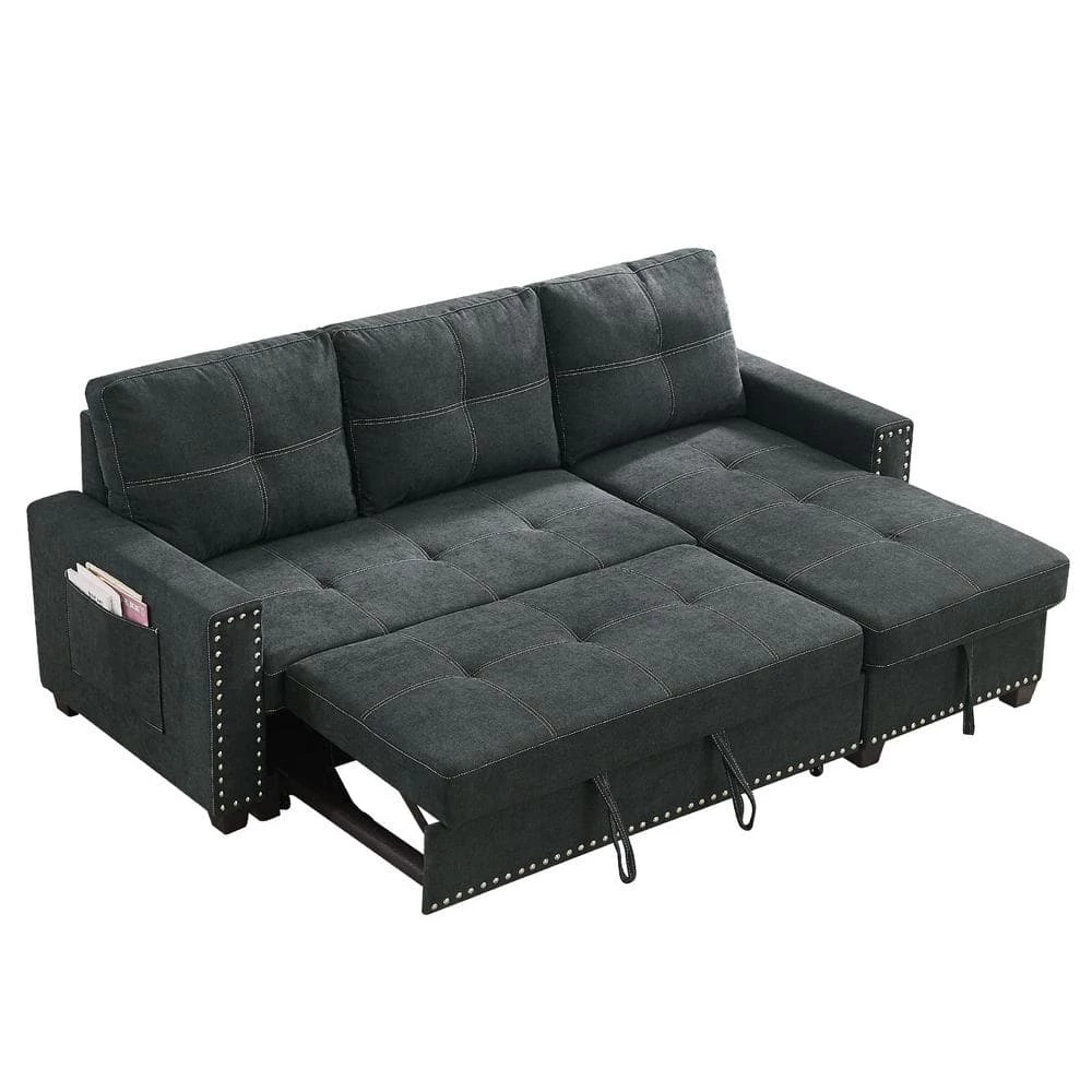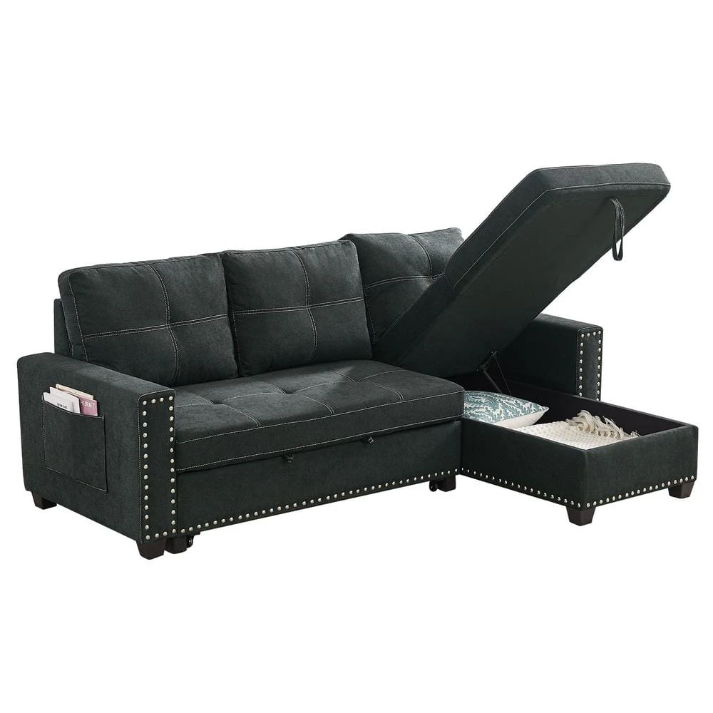This Sectional Sleeper Sofa is a modern marvel of engineering. It goes from a sofa sectional to full size sleeper with minimal effort. If that isn’t enough function, we also added storage to the chaise. What’s more, the chaise can be assembled both on the left or on the right.