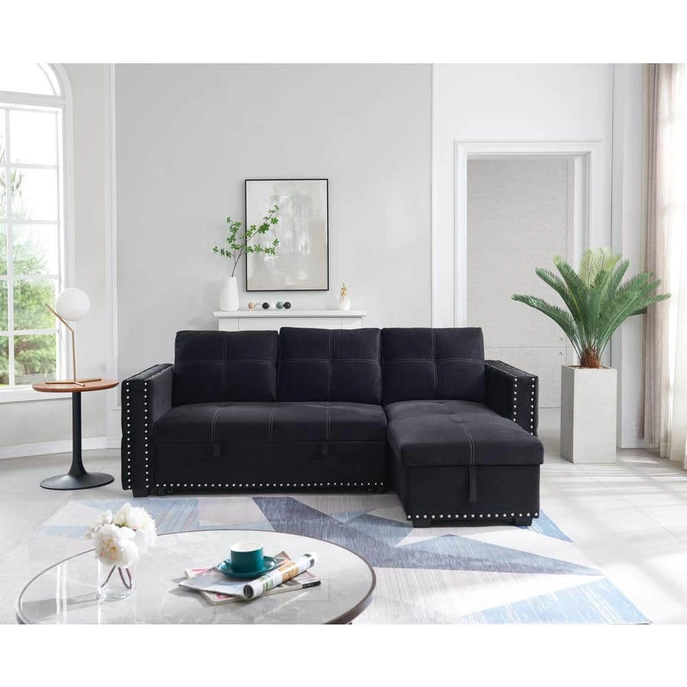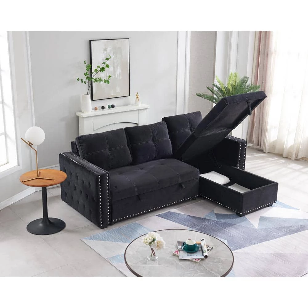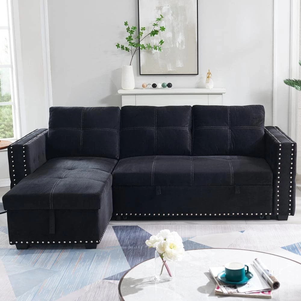 This sofa easily converts to a pull-out sleeper, offer extra space for overnight guests. When not sleep need, you can use it as a sectional sofa, the chaise features hidden storage,it also can be configured as right or left side placement based on the needs of your space, classic L shape sectional sofa is a great charming to your living room. It brings elegant style to your living room and blending well with any home decor.