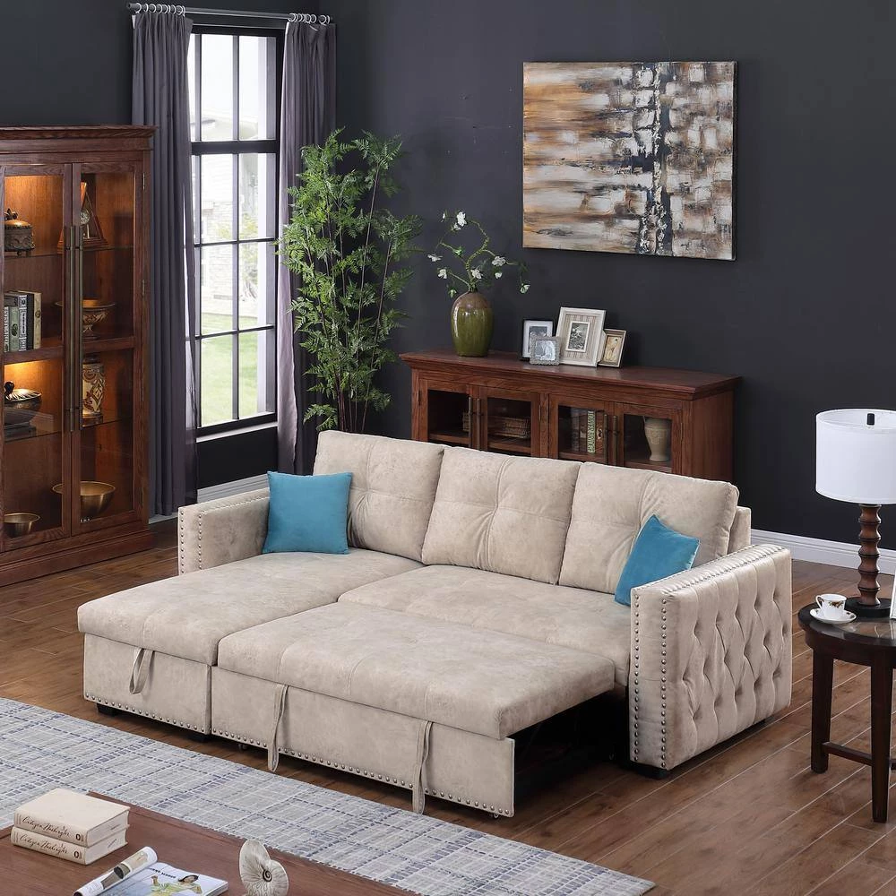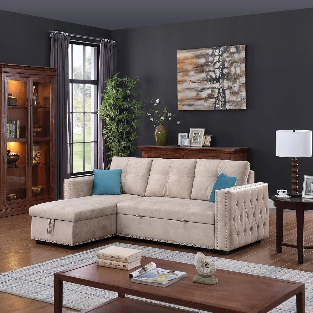 This sofa easily converts to a pull-out sleeper, offer extra space for overnight guests. When not sleep need, you can use it as a sectional sofa, the chaise features hidden storage,it also can be configured as right or left side placement based on the needs of your space, classic L shape sectional sofa is a great charming to your living room. It brings elegant style to your living room and blending well with any home decor.