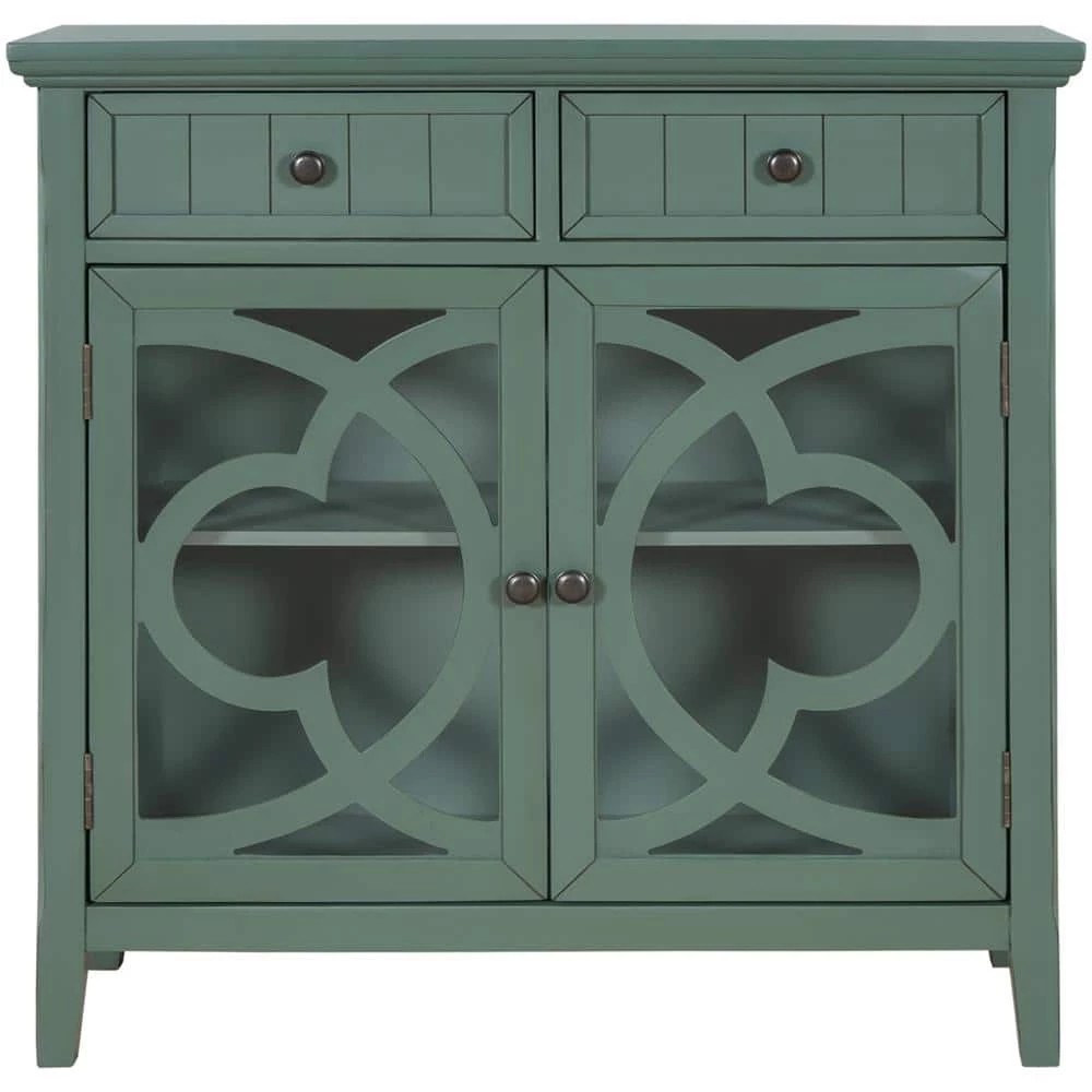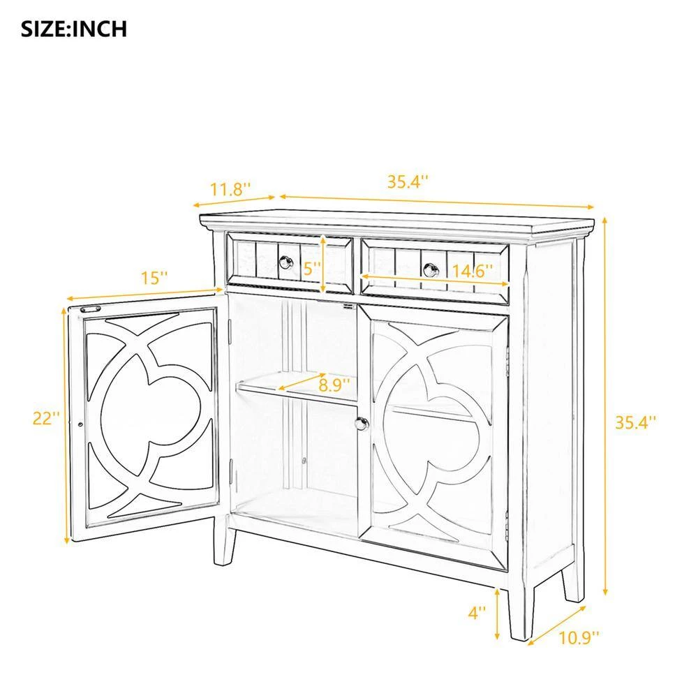 - The retro carved doors with three vintage colors perfectly match any home decor. It can be used as a console cabinet, a buffet sideboard, or as an elegant storage cabinet.