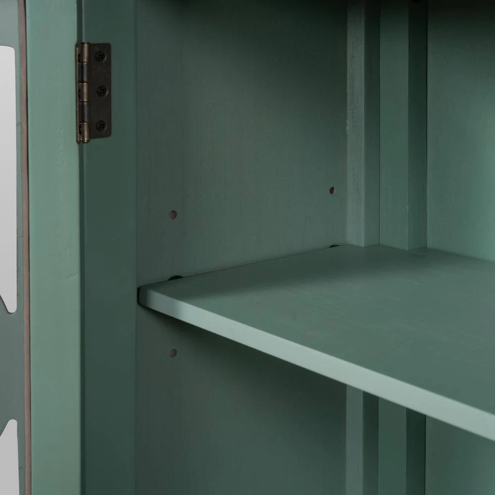 This 2 – Door Accent Cabinet with the fretwork doors,attractive and eye-catching,offers added storage in a space-saving design that is ideal for any size home.Made of MDF Veneer for top and acacia wood for framework and legs, the storage cabinet is built for long-lasting construction. With painted finish, the accent cabinet features a simple yet charming look. The shelf is adjustable to store your favorite decor and accessories. This combination of practical and ornamental design create a beautiful accent console cabinet that will complement any living room, dining room or hallway.