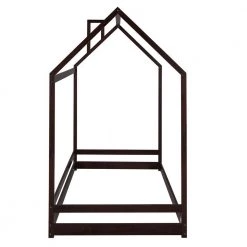 Wood Espresso Twin Size House Bed with Fence for Kids Teens by Z-joyee