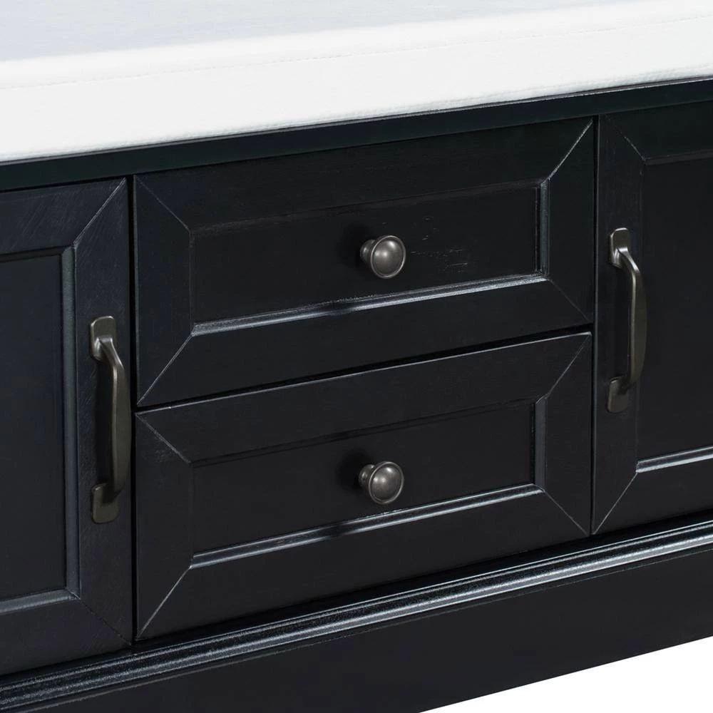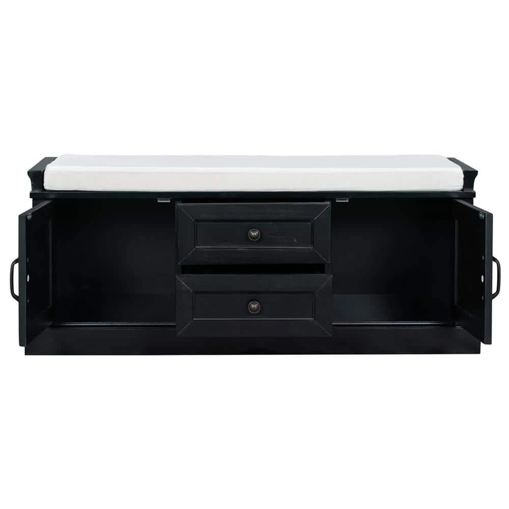 The storage bench with cushion brings a decorative and functional storage piece to your Entryway, foyer, mudroom or laundry room. The distressed aluminum drawer handles can add an extra retro touch to your home.The rest is made of high-quality MDF boards,Enclosed doors and drawers meet the needs of the home’s multi-purpose storage, making it ideal for storing small items such as books,shoes,umbrella and keeping the living room, hallways and entrances clean and tidy.