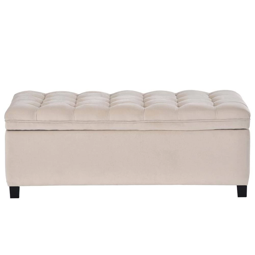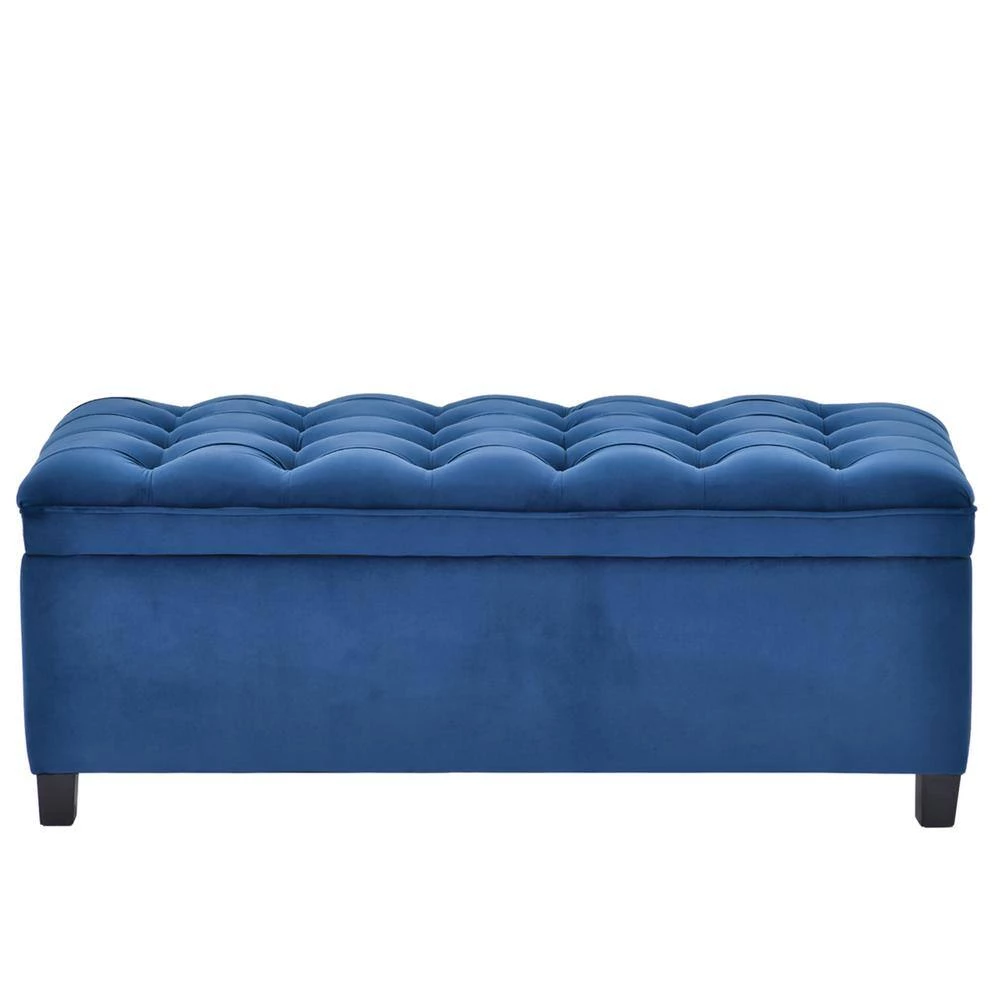 Crafted with fine wood and cushion foam seat makes it both durable and stunning.More than just a spare seat or stylish accent, this bench brings a convenient storage solution to the space that needs it most. Perched atop four feet made of rubber wood, this piece is crafted from solid Eucalyptus frame . Upholstered in polyester,the button tufted top exudes subtle sophistication in your space. As an added bonus, this product comes backed by a one-year warranty.