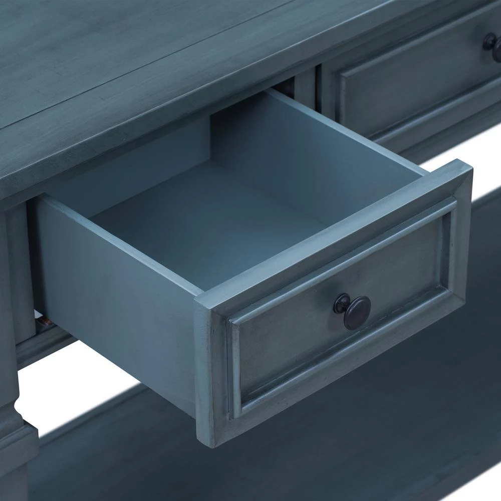 • This console table incorporates a balanced aesthetic to present a symmetrical structure, and the most direct reflection is the design of the three top drawers. A big drawer in the middle and two small drawers on both sides. The consistent expression of the modelling that drawer surface concave and convex is integral style.