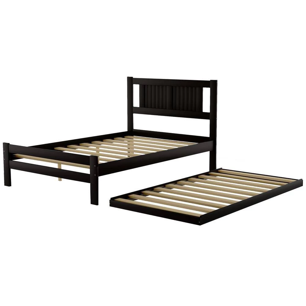 This platform bed comes with a trundle that can be adjusted as high as the bed. Featuring bracket under it, the trundle is easy to stand up as a bed and when not in use, it’s easy to take the bracket back and store the trundle under the bed. Crafted of solid pine wood and high-quality MDF, the bed is built to last and 10 slats are available for both bed and trundle, so stability and weight capacity is guaranteed, you can rest on it with peace in mind.
