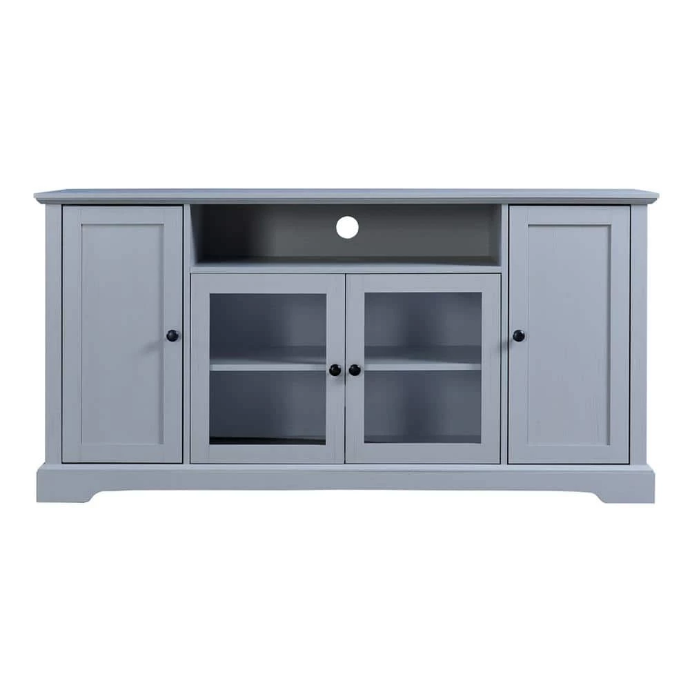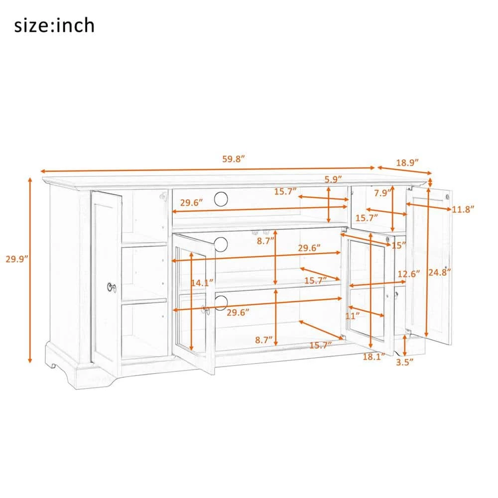 - storage cabinet with two toughened glass doors in the middle of TV stand.