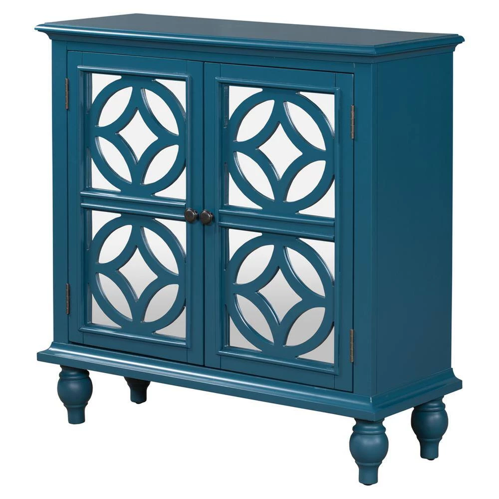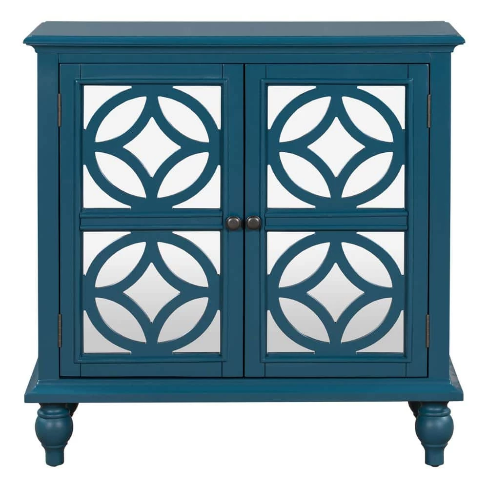 - Allowing this mirrored chest to match fashion with function the two large cabinet doors open to a chic and roomy storage space giving you ample space to store your knick-knacks, keepsakes, and other essentials while adding appealing fashion to your home.