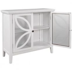 32 in. W White Accent Wooden Storage Cabinet with Decorative transparent Door by Z-joyee