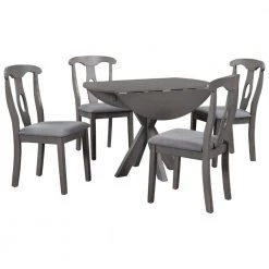5-Piece Round Gray Wood Top Dining Room Set Seats 4 by Z-joyee