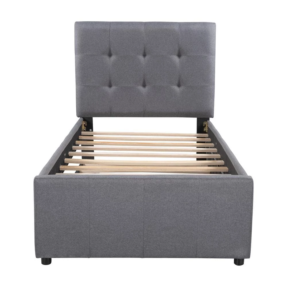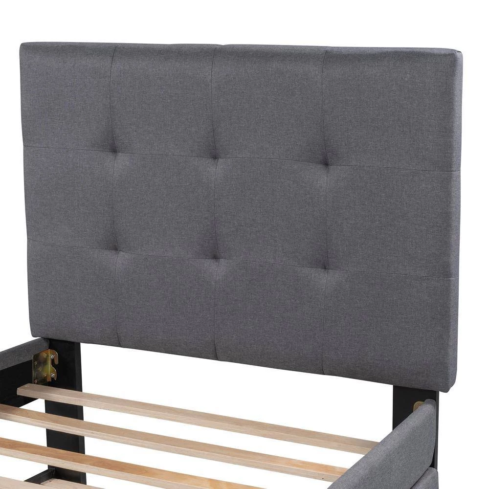 This excellent upholstered bed frame is the perfect platform to hold your standard size mattress and eliminates the need for a box spring. The whole construction is made of linen,solid wood and MDF so it has a long service time. With 10 slats which are tightly distributed, the bed frame can easily hold the weights of the mattress and 2-adults. Our bed frame is ergonomically designed to ensure the quality of sleep and relieving the fatigue. Its modern and concise design goes perfectly with your room. or hotels thus you can put the bed in the guest room.to be a nice spare bed.