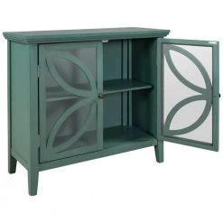 32 in. W Navy Green Accent Wooden Storage Cabinet with Decorative transparent Door by Z-joyee