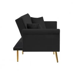 78 in. Black Velvet Twin Upholstered 2-Seater Sofa Bed by Z-joyee