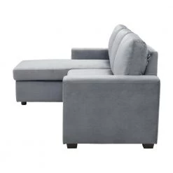 85.8 in. Gray Velvet Full Size L Shaped Sectional Sofa Sofa Bed by Z-joyee