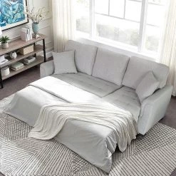 84 in. Gray Fabric Twin Size 3-Seats L-Shaped Sofa Bed by Z-joyee