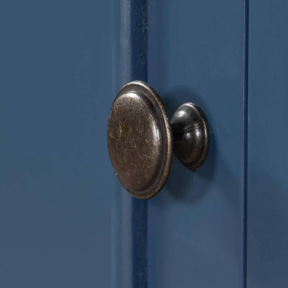 - Aspects of both modern and vintage come together to create this unique piece, featuring farmhouse. inspired wood frame detailing on the outer drawers with contrast from the iron handles for heightened appeal.