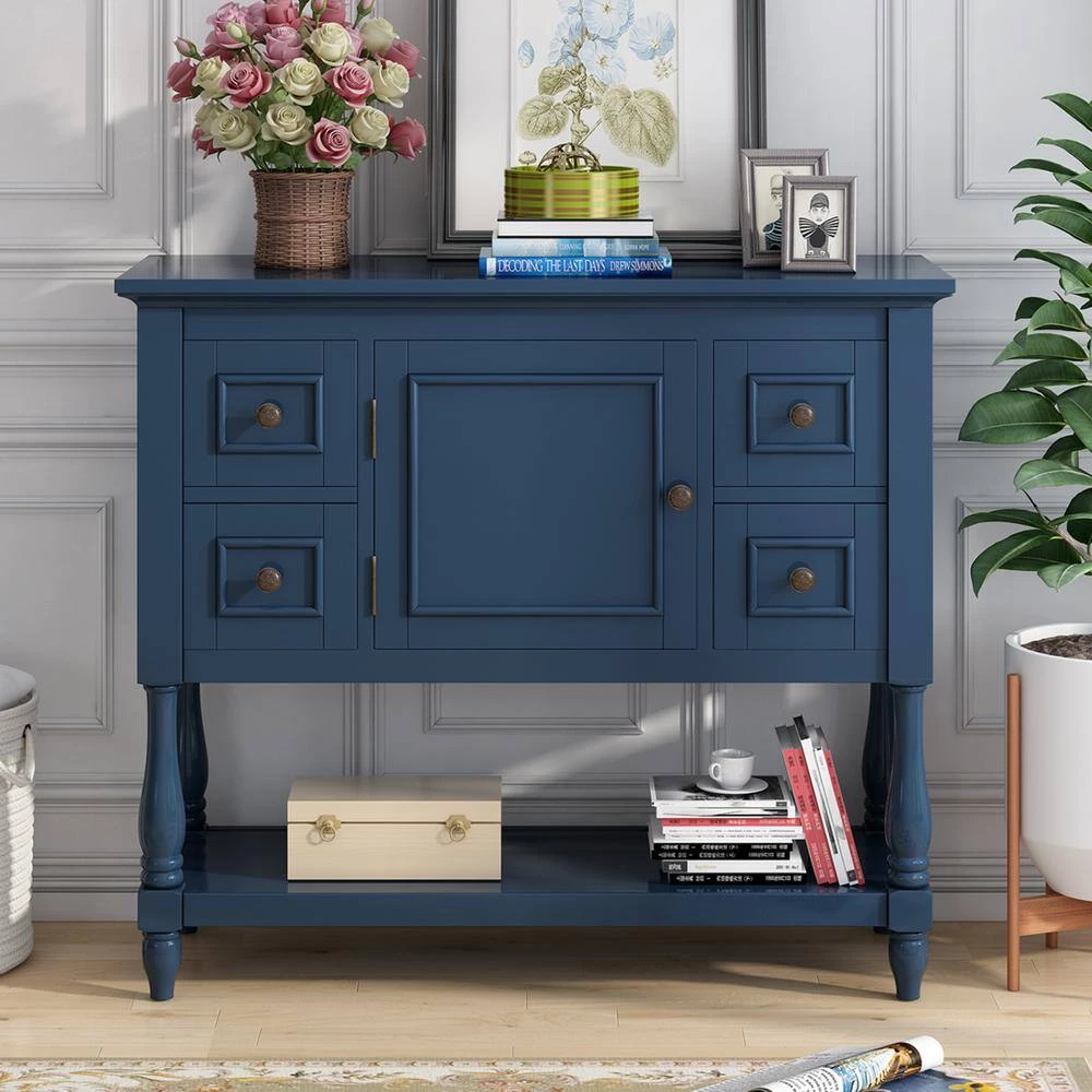 - Four accent drawers , users will have plenty of space to store their belongings and avoid letting clutter accumulate on the console table.