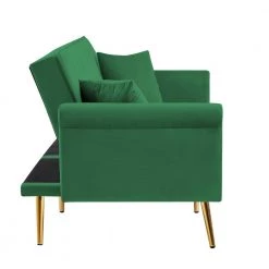 72.8 in. Green Velvet Twin Size Futon Sofa Sleeper Sofa Bed with 2-Pillows by Z-joyee