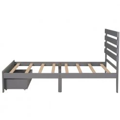 Wood White Twin Size Platform Bed with Wood Slat Support by Z-joyee